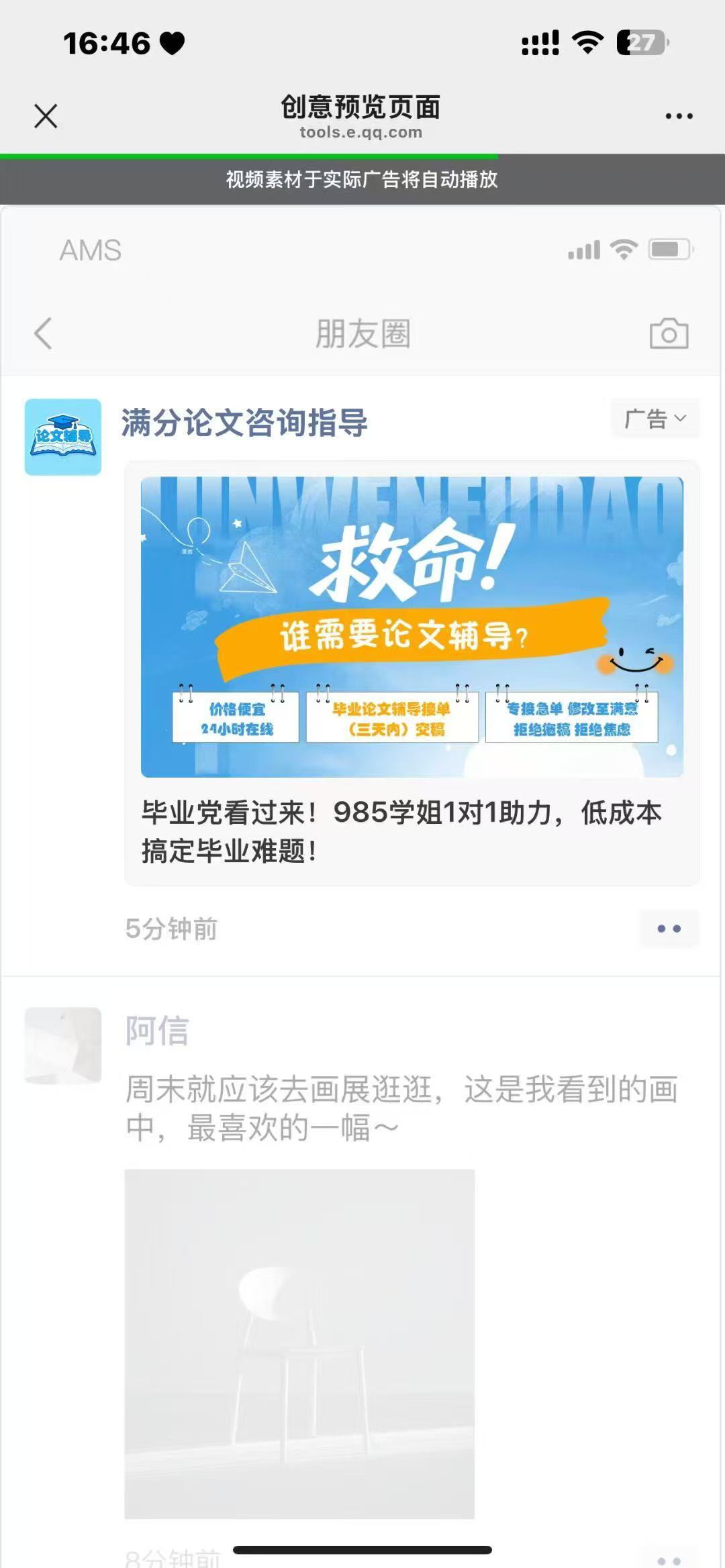 腾讯朋友圈广告有户可跑,养生医美、上门按摩、医疗保健、中医培训 、考证、夏令营测算国学、AI培训、二手奢侈品、复刻手表包包、成人用品、名酒回收、租机